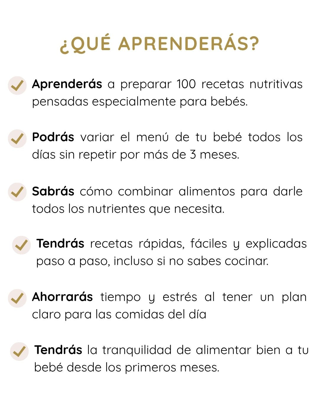 👉 Incluye 100 recetas saludables para bebés, explicadas paso a paso. También recibirás consejos de alimentación, ideas de menú y guía de introducción de alimentos según la edad.